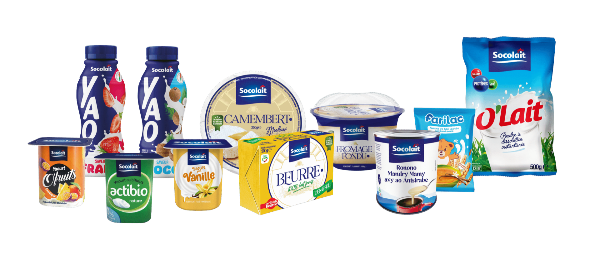 Notre offre de produits laitiers inclut une sélection variée de yaourts, produits de crèmerie et fromages. Nous proposons également des produits essentiels comme la farine lactée, le lait concentré sucré et le lait en poudre, répondant aux besoins des familles malgaches.