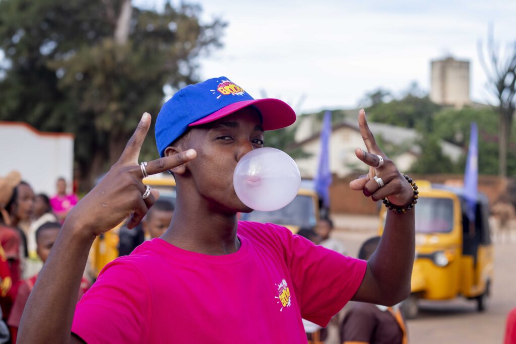 Mr BOOM, life on the fun side / fun side of life! With an energetic and playful spirit, Mr BOOM makes fun explode into bubbles. Famous for its fruity flavors and soft texture, it’s a favorite among kids who love to compete in making the biggest bubbles. But it’s not just for them—adults enjoy it too!