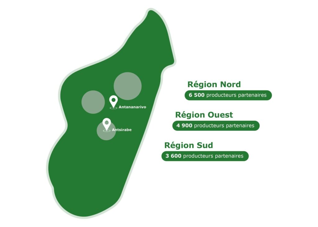 Depuis 35 ans, nous soutenons une agriculture traditionnelle et responsable en partenariat avec 15 000 producteurs agricoles implantés sur les Hautes Terres de Madagascar, où nos cultures s’étendent sur plus de 1 000 hectares.