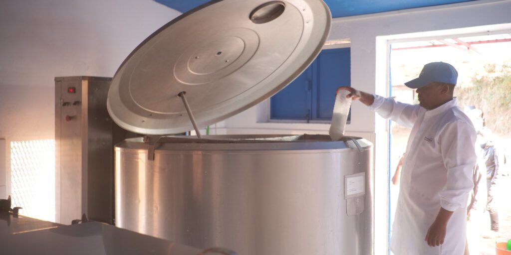 Une fois collecté, le lait est stocké dans des réservoirs réfrigérés. Des échantillons sont prélevés et testés dans un laboratoire accrédité pour s’assurer de la conformité du lait. Dès validation des résultats, le lot est prêt pour la transformation.
